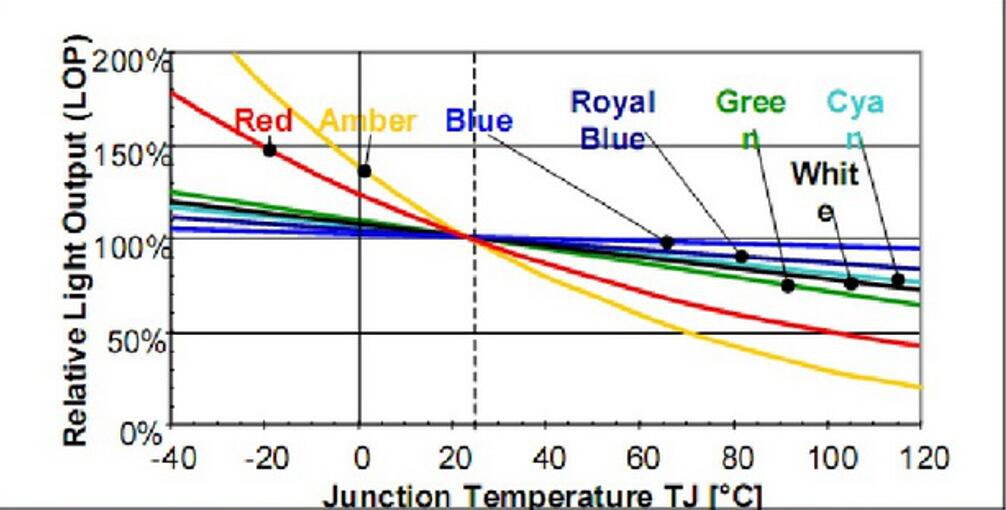 理論上LED總的光電轉換效率約是54%,由于材料、工藝,的缺失實際的轉換效率在30%左右。剩余能量主要以非輻射復合發生的點陣振動的形式轉化熱能,這就是LED熱源因素。鐵支架導熱不良,環氧樹酯黃化,芯片與支架接觸不夠緊密,芯片衰減大,如果是白光,還有熒光粉衰減的問題都會造成光衰。
