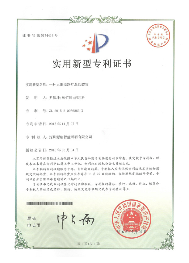 太陽能路燈激活裝置專利